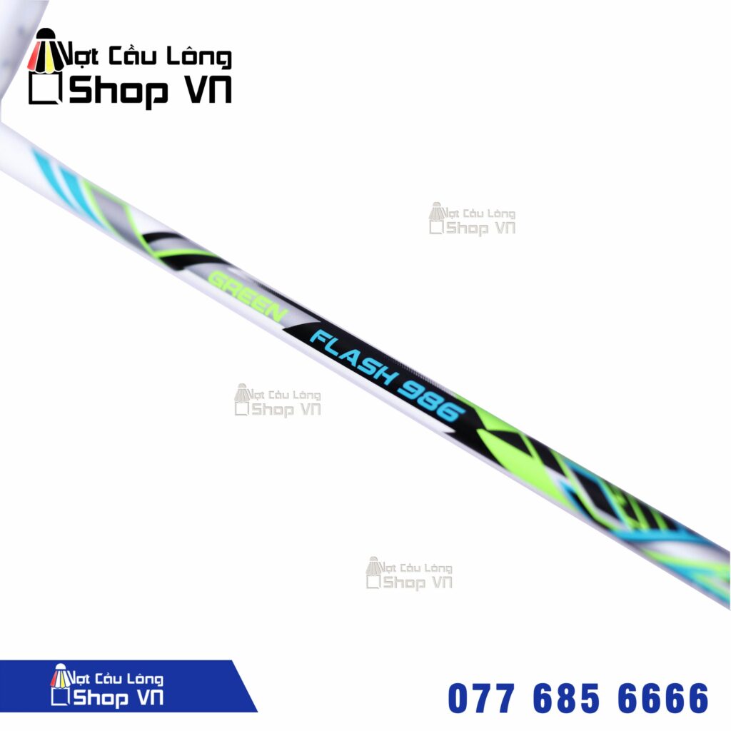 Vợt cầu lông DAS Flash 986 – Green được thiết kế bằng sợi cacbon siêu bền, dành riêng cho những ai thích lối đánh thiên công. Vợt không quá nặng, cũng không quá nhẹ khi sở hữu trọng lượng chỉ 4U. Cán vợt nhỏ với chu vi G5 sẽ giúp vào lực một cách tốt nhất, xoay chuyển dễ dàng, sẽ phù hợp với người có lực cổ tay yếu lẫn trung bình.
