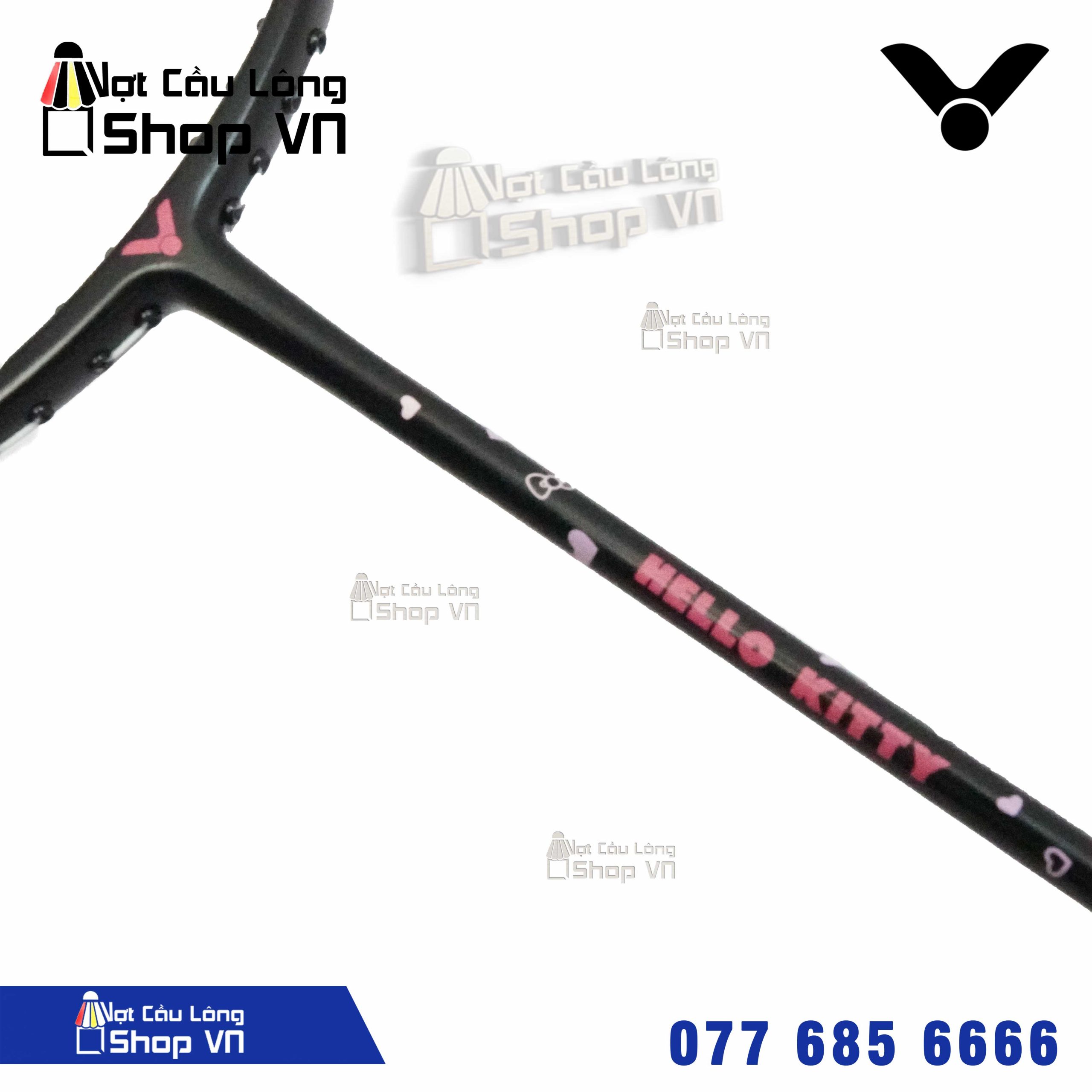 Victor Hello Kitty – Đen hồng của hãng Victor chuyên về phản tạt, tì đè với những pha cầu xử lí nhanh. Điểm cân bằng tuyệt hảo nằm vào khoảng 290mm, thân vợt có độ đẻo giúp người chơi dễ dàng thực hiện các đường cầu chớp khoáng, thích hợp sử dụng trong đánh đôi ở vị trí cầu lưới.
